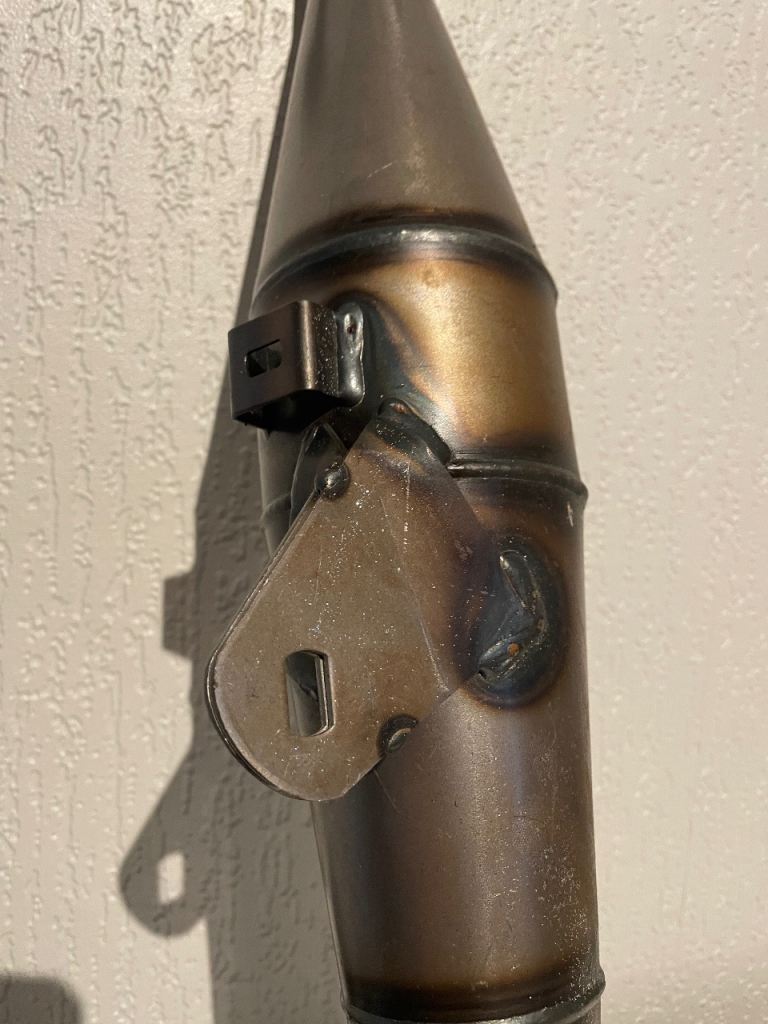 Curved pipe with cone-shaped megaphone muffler. Never been used. Sold as seen. £25