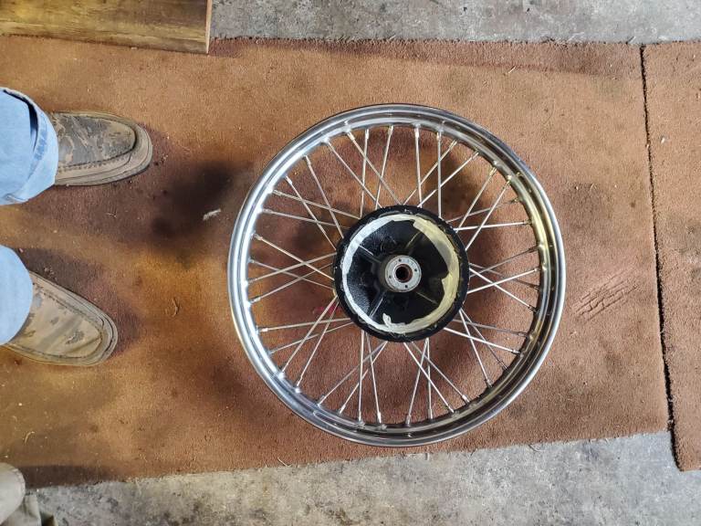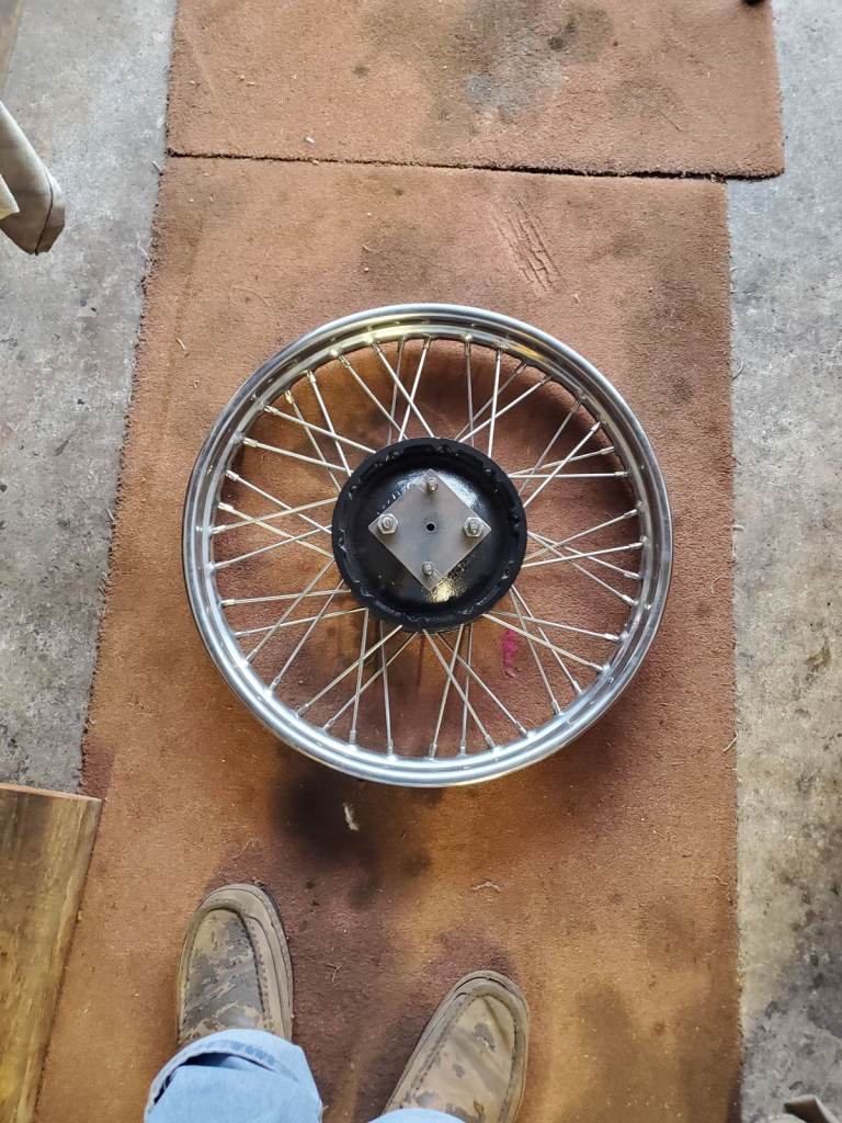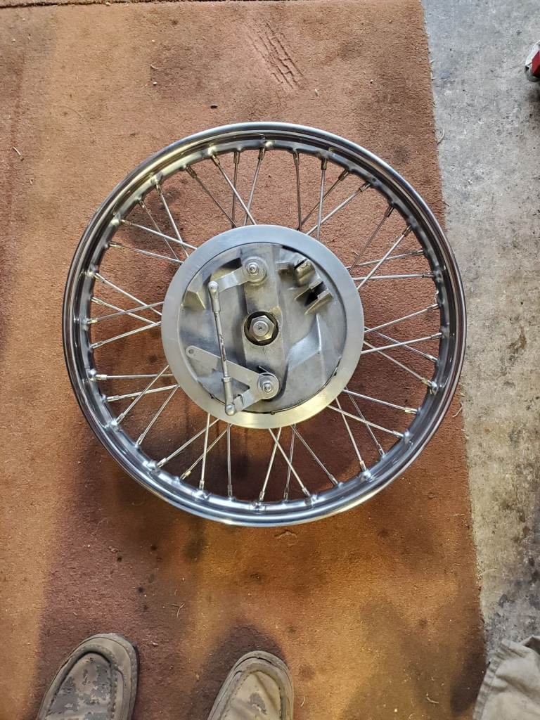 bsa 19 inch wheel stainless rim and spokes rear with new hub .front wheel 19 inch stainless rim and spokes with twin leading shoe new shoes and spindle . will all bsa from 250 to 650 .never been fitted they are new. cash on collection or bank transfer. collection only