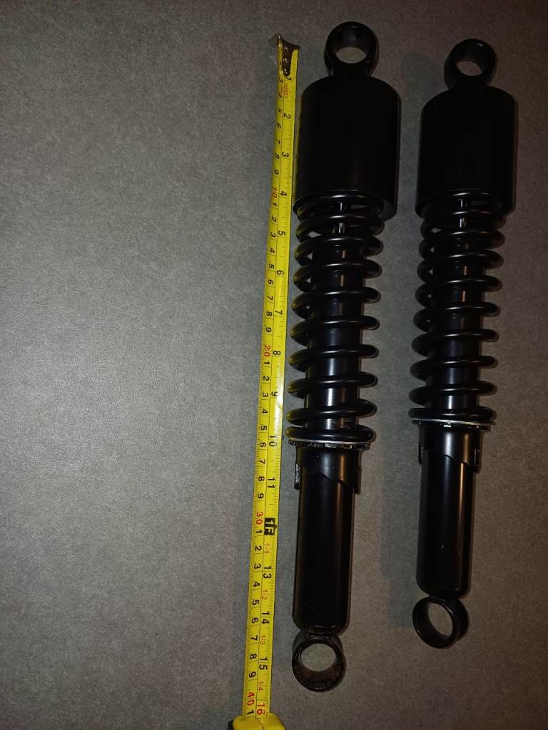 Black motorcycle heavy duty rear shocks as new 15 inches long buyer must collect bargain only £20