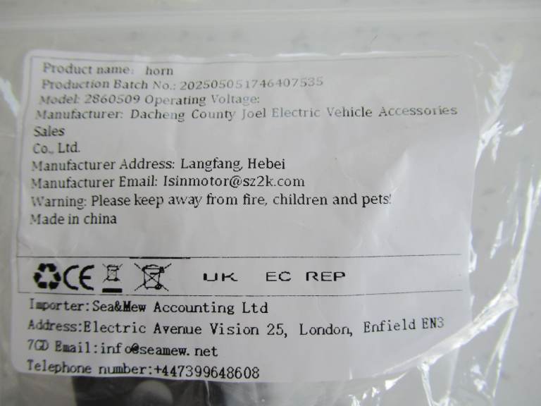 HI, HAVING A CLEAR OUT OF THE GARAGE BITS AND PIECES....SELLING A TECHNICALLY USED (BUT NEVER USED IF YOU GET MY DRIFT) UNIVERSAL 12V MOTORCYCLE/SCOOTER HORN.