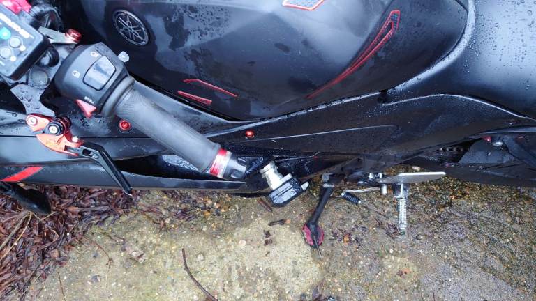 Motorbike was knocked only onto left side during low speed filtering accident and greatly protected by the leftside sliders. All resulting damage is in the photos. Bike was properly maintained and in excellent condition before this. Thrid party insurers chose to write it off rather than deal with the repairs.