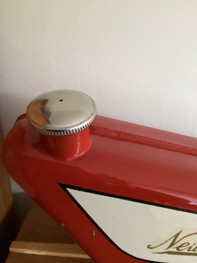 A vintage and early tank for a New Hudson autocycle in good order with its chrome cap. Great for a restoration or simply decoration and display!