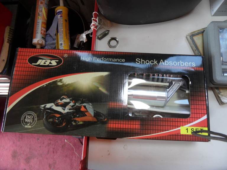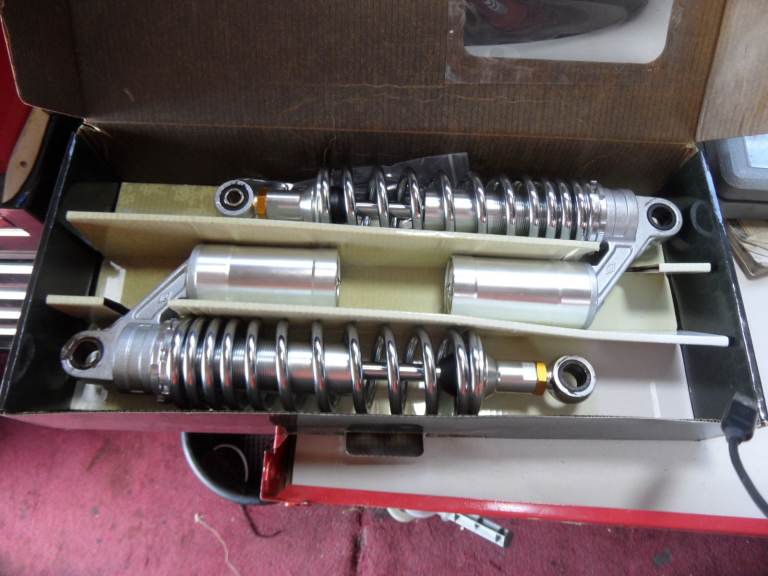 nitro gas filled chrome rear shocks bought to fit 1982 gold wing but will fit others bikes with 33cm hole centres (top mount to bottom mount )15mm mounting holes top and bottom eye fitting