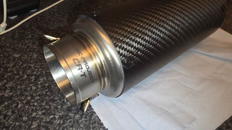 Posting for 12+ yearsSC-Project CR-T Bike Muffler Carbon fiber fibre, exhaust inlet 60mm exit 65mm SC Project