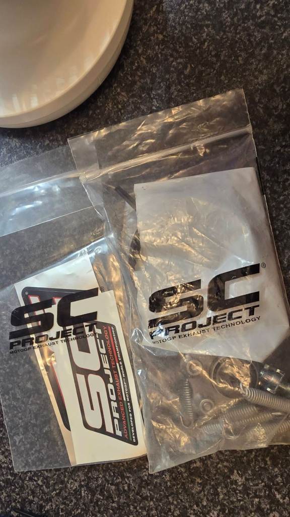 Bought a few years back for my MT07 and then replaced with the Akrapovic after literally 20-30 miles of riding. Cleaned it, basically brand new. Titanium and Carbon looks fantastic, especially in the sun. Can provide more pictures or video on request.