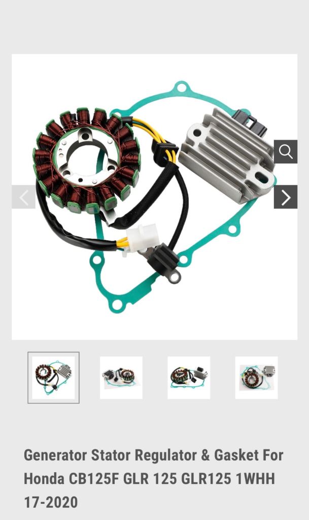 Here i have a kit for a 2017-2020 Honda CB125F/GLR125 which includes a Stator, Regulator Rectifier and a Gasket. I’m selling this kit as i ordered the wrong one and left it too long to return it.