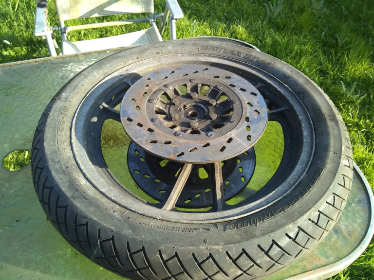 Nice straight rim and great discs, wheel berings good. May fit larger GSX models or the 400. Collection preferred. Engine and forks also for sale on here.