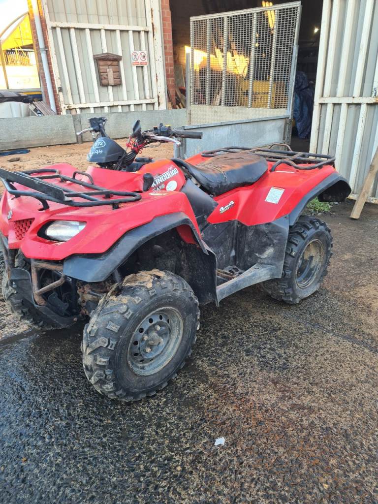 Suzuki king quad 400cc 2017 66 reg with full v5 lohgbook in my name only 1000 miles /2000 hours (quads done nothing) excellent runner starts 1st press of the button manual gearbox with hi n low + reverse 2wd/4wd selecatable SPARES OR REPAIR i think the clutch is stuck between 2 gears or clutch has gone either way will need opening up and inspected n fixed will make a great farm quad for someone and probably an easy fix for someone that knows what they are doing which i dont lol still a cheap quad £1995 no offers