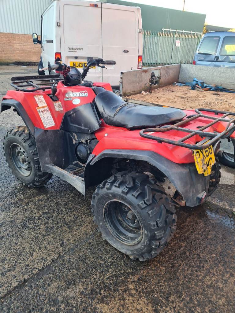 Suzuki king quad 400 2017 66 reg full V5 (logbook) here excellent runner n in fair condition for a used farm quad low hours/miles for its age starts 1st time every time however it will not select gear (manual foot shift) its seems to be stuck between 2 gears probably an easy fix for a man thats handy with spanners but that man is not me lol will make a good cheap road legal farm quad for someone once its all sorted n driving £1995 ovvno