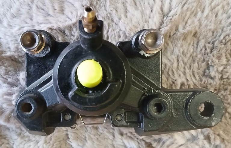 A refurbished Tokico rear brake caliper. This has a new piston, seals and brake pads, done less than 200 miles.