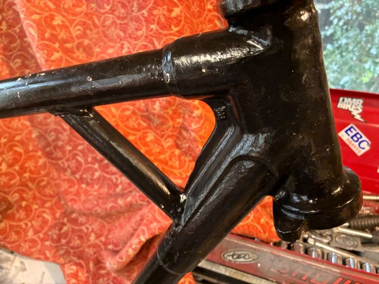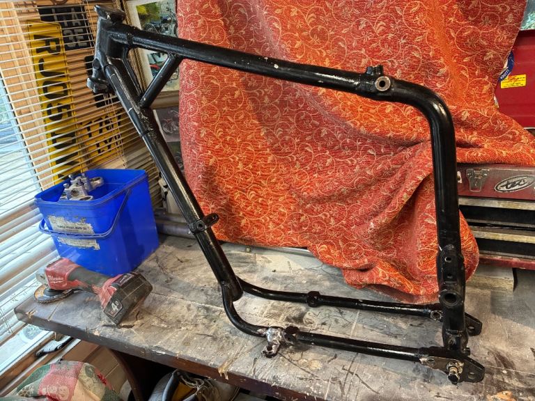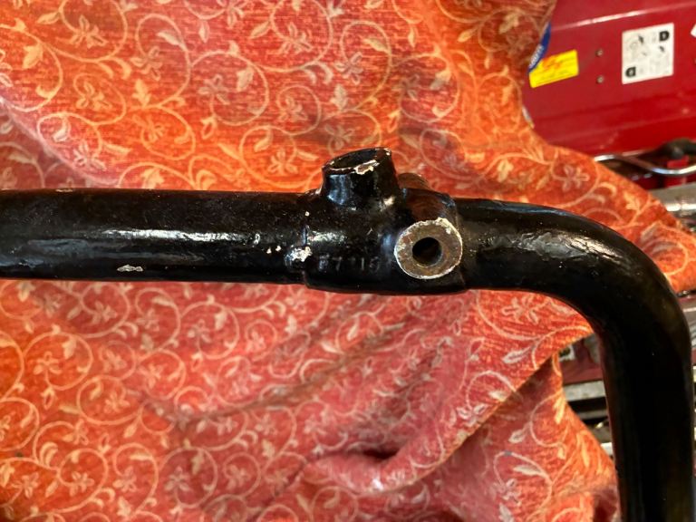 1966 triumph t100r frame in good rust free condition but it has had weld on the kickstand bracket but it’s a good solid weld
