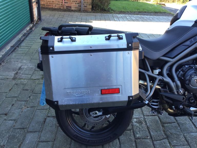 Aluminium adventure panniers, lockable, with key, no scratches, dents or stickers & in very good condition. Comes with full rack to fit. Comes from a 2018 Triumph Tiger 800 xrx