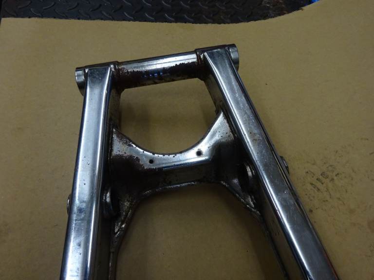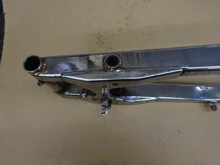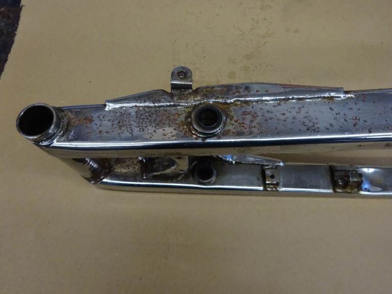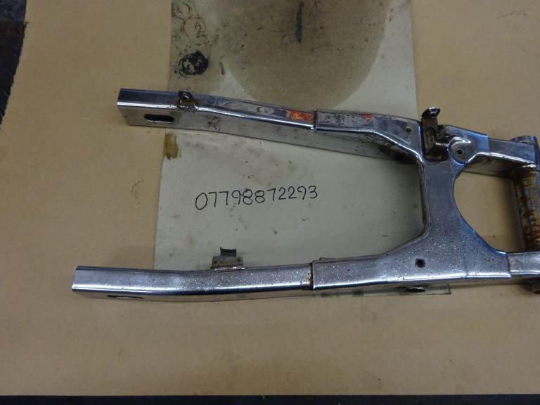 REAR ARM aka SWING ARM for a Yamaha LC 250/350 YPVS 1WT. May fit other models. Genuine Yamaha part. It has been checked on a block and appears to be straight and with-in spec. As the photos show, it has been chrome plated as some time in the past but the chrome is pitted. Please look carefully at the photos to acertain your understanding of this. I will post for an additional £15.00