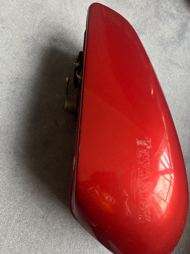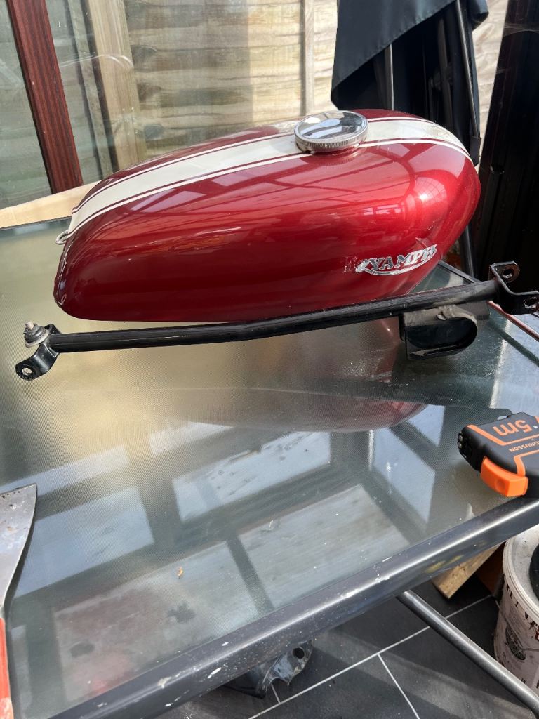 Yamaha fuel tank for sale in good condition it was fitted on my triumph 3ta I have the frame to go with it as far as i know it a Yamaha yds7 tank