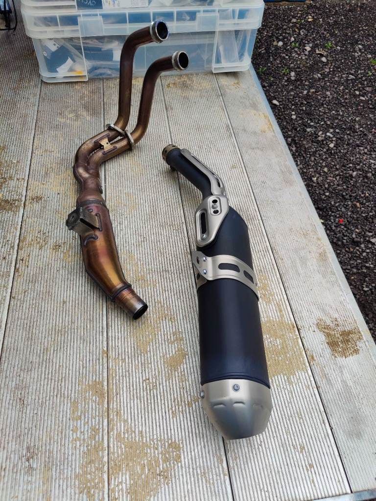 Original Yamaha Tenere 700 exhaust system removed from a 2019 bike.