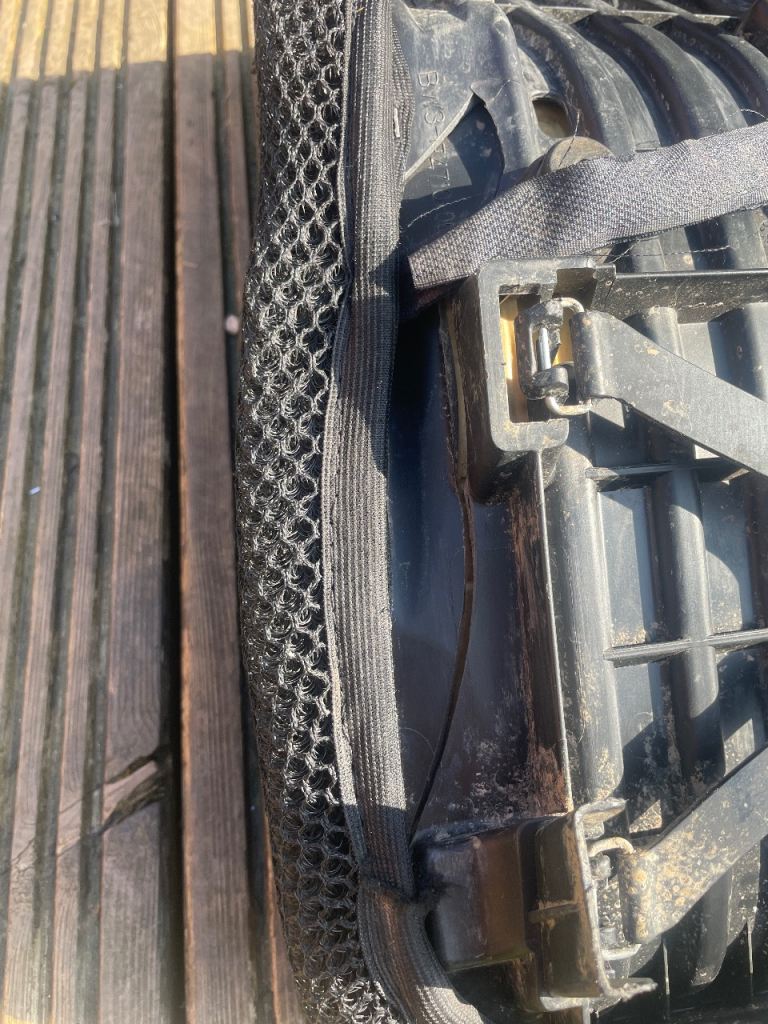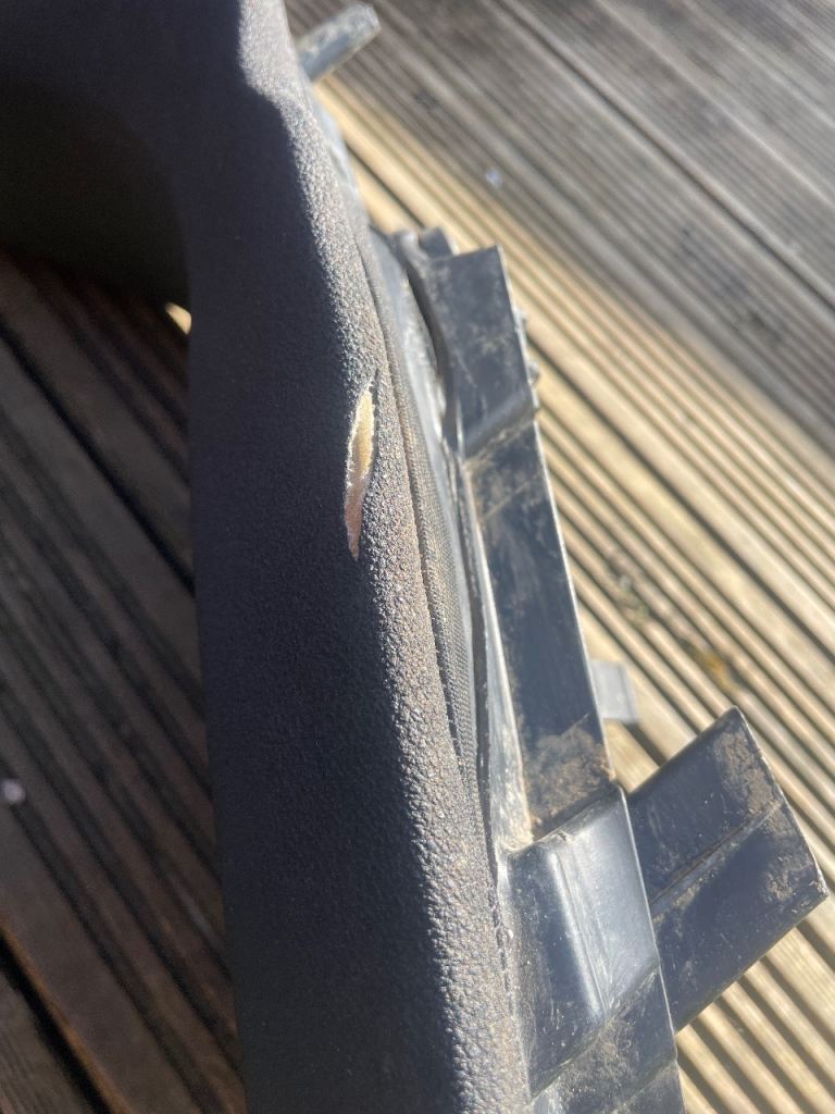 There is crack as seen in pictures but this doesn’t effect anything as its under the seat. Also there is a small tear at the side of the seat which is unnoticeable.