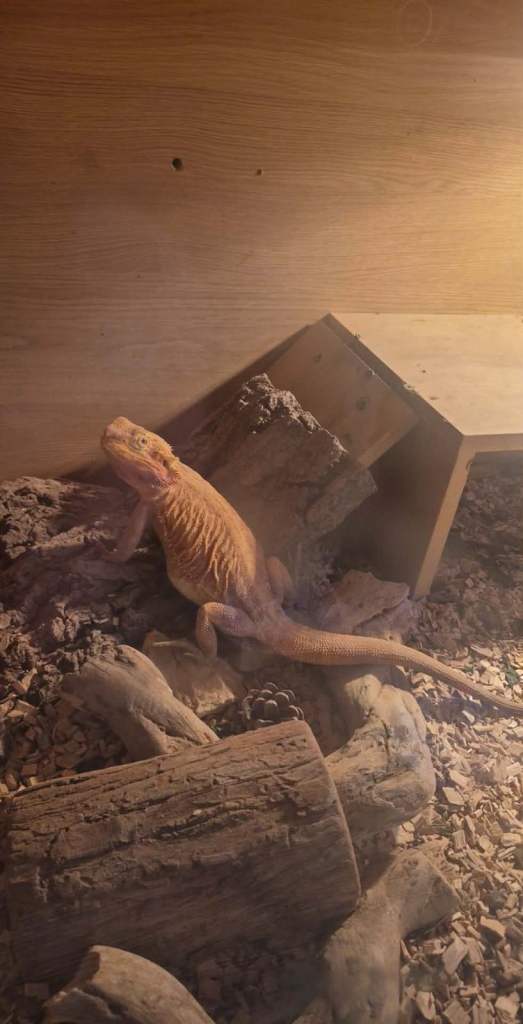 Female called Finty comes with full set up , food , dust. Loving girl and loves sitting on you for cuddles. Comes with the viv .. very heavy so will need two people. She’s never been around other bearded dragons so needs to be on her own