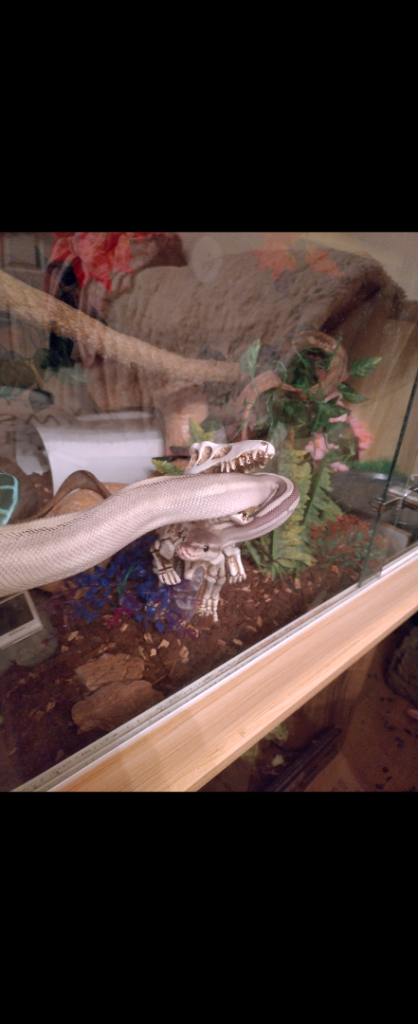 I have had Bruno for 3 years now. He has never refused a meal. He loves being held. Never had a bad shed. I just don't have the time to get him out as much as I should. He really is the perfect snake. I would estimate him to be about 4 foot and very healthy. He has a full enclosure with ropes, sticks, and places to hide. I don't want him going to a rack system. Comes with everything you need (apart from rats, need to get some). He eats frozen thawed and will eat them even if they aren't properly up to temperature. Collection Watton.