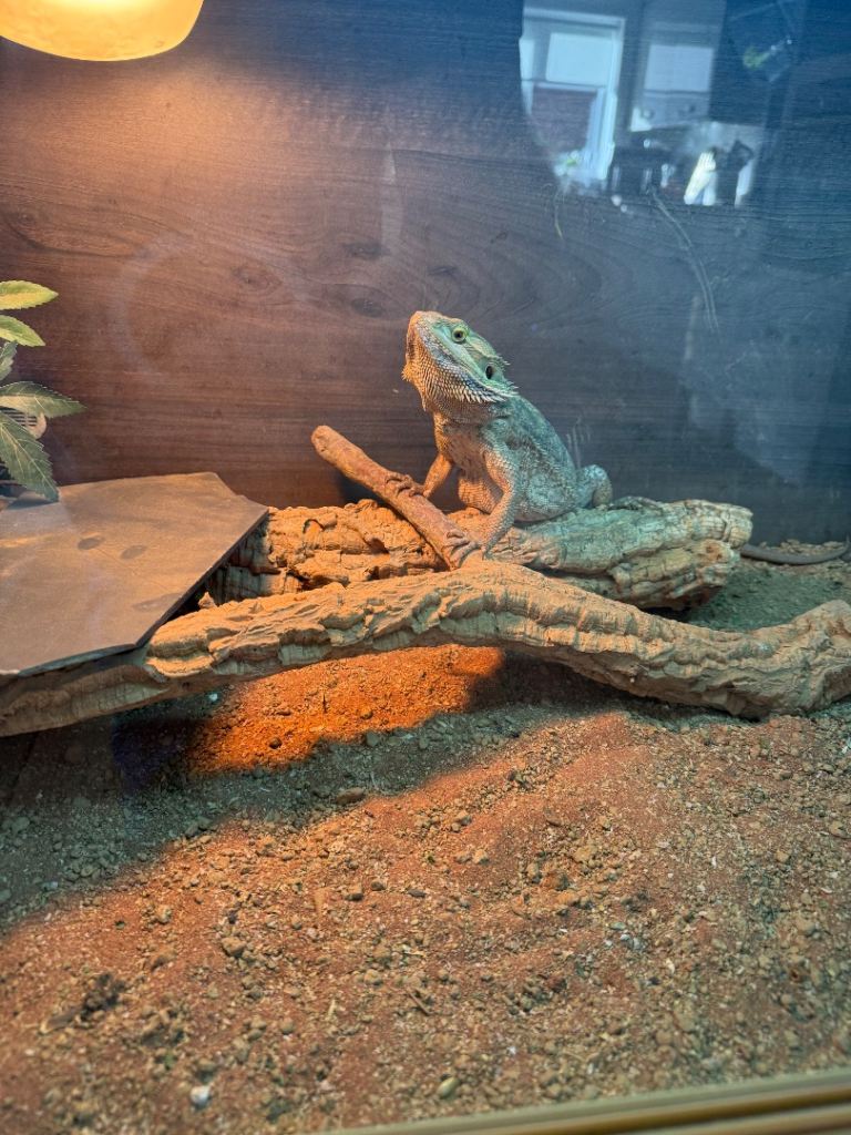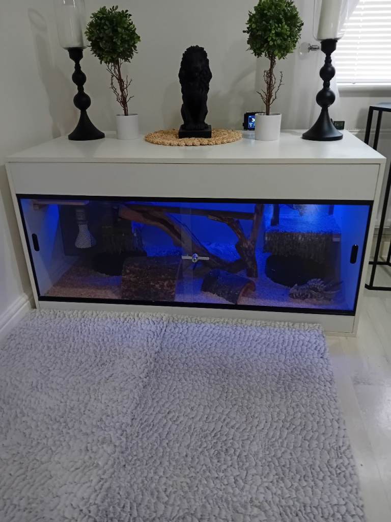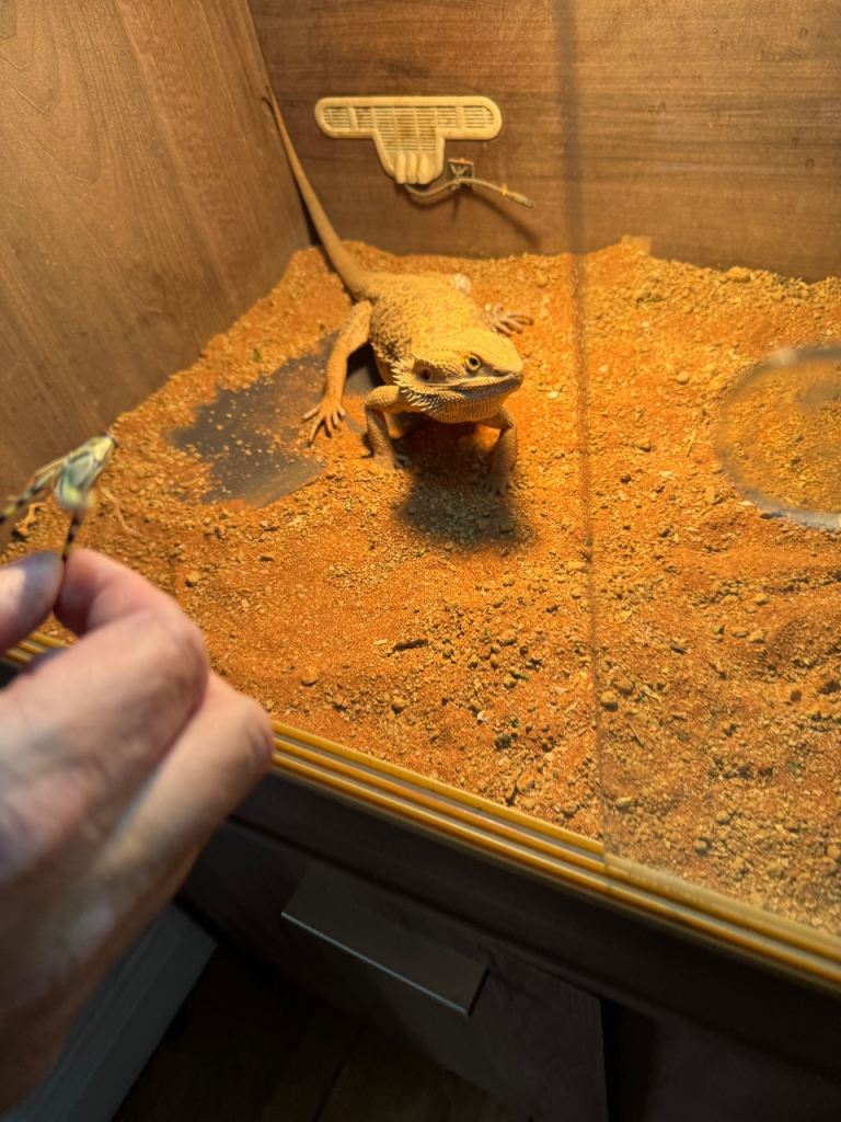 1yr old (feb) Male bearded dragon with 4ft vivarium and built in stand (do separate) come with literally everything in the picture. Heating system alone was over £300. Also got bowls live food and other bits.