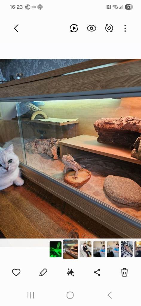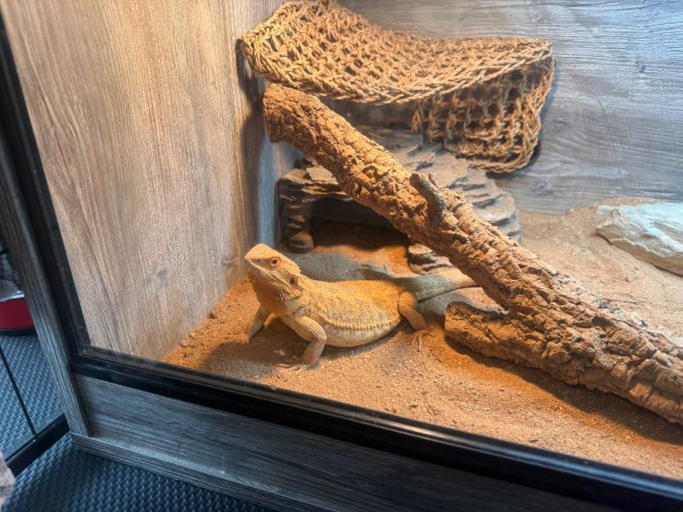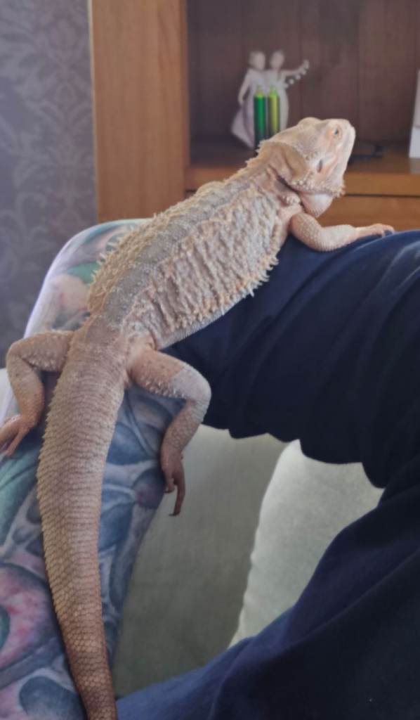 Bearded dragon around 3 years old, unknown sex. Fantastic character, loves attention. Comes with full set up. Buyer uplifts.
