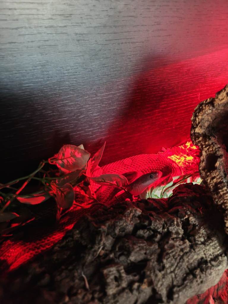 Exceptional corn snake with vivarium, heat lamp plus spare. The snake is called Shakari. She is so kind and loves being held. We as a family have changed circumstances and just feel she could be given more attention with another loving family. She is only 4 years old so still very young for a corn snake. As far as snakes go she is perfect.