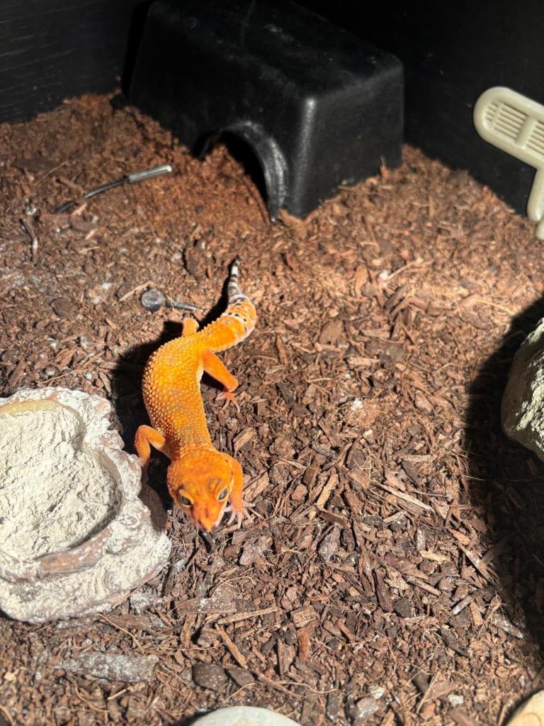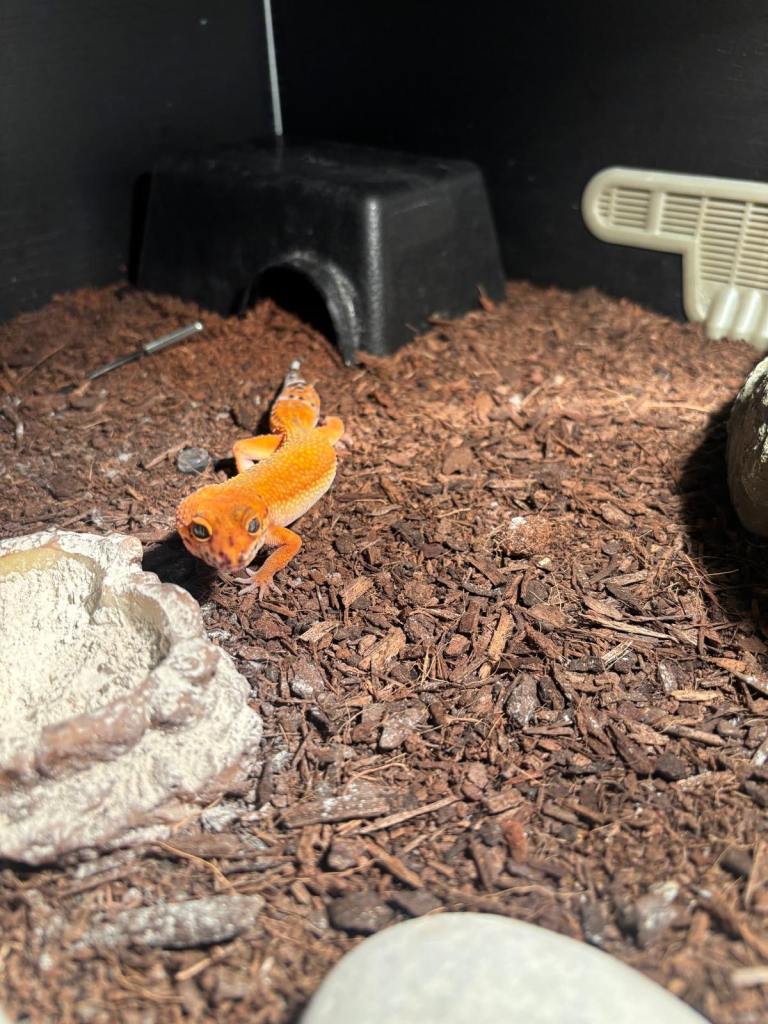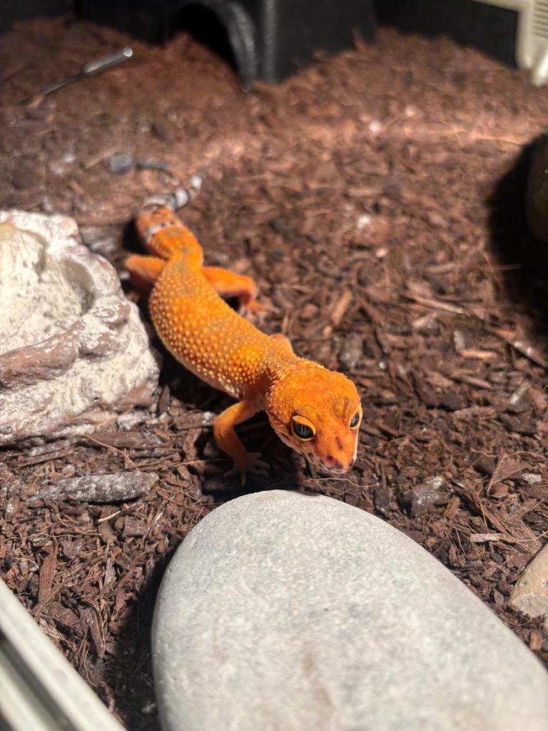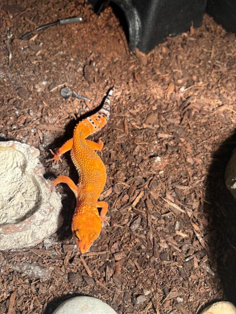 1. starting with the orange one this is a tangerine inferno line purple head gecko (born 2025) £150