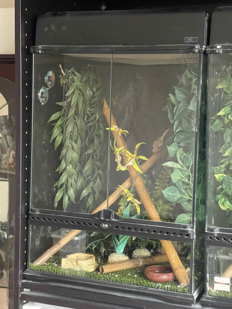 Full set up . Comes with 2 x crested geckos, one male. One female both eating repashy,shedding and pooing fine. Also comes with Exo- Terra glass terrarium 45cm x 45cm x 60cm,exo -Terra canopy light and all plants.Also water dish and shedding or laying box.