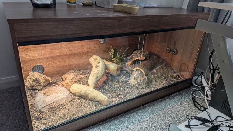 4 ft vivarium bought from new so 1 owner. All lights including uvb, fluorescent and led tube with a dimmer thermostat. Decorations included. 1.5 year old female bearded dragon which is healthy and partially friendly just ABIT weary of being touched but once in hands she is fine. Selling due to no time with work. Please not that it will need to be picked up.