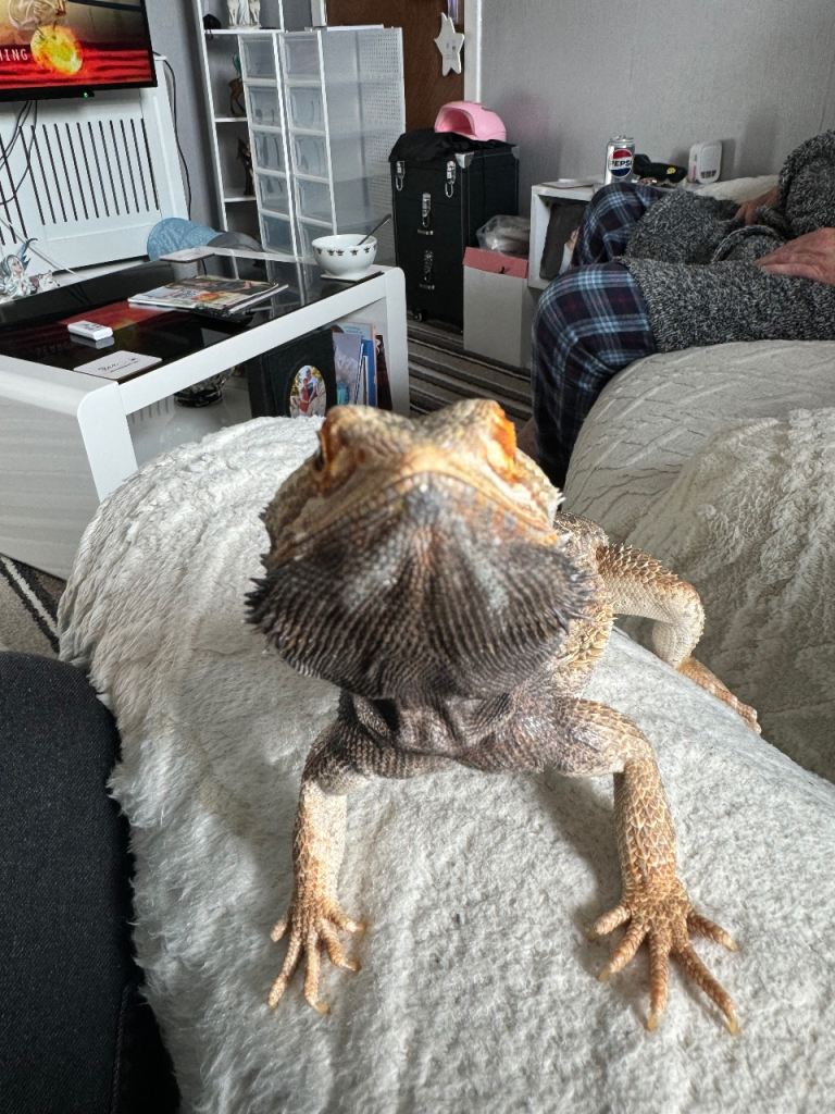 Here’s my lovely bearded dragon Sully he’s 7months old he’s had a good life so far and a long time ahead of him he’s been treated like family. I have to give him over to a new family as I just don’t have the space for him in are house. High end vivarium fully kitted out with equipment and habitat items.