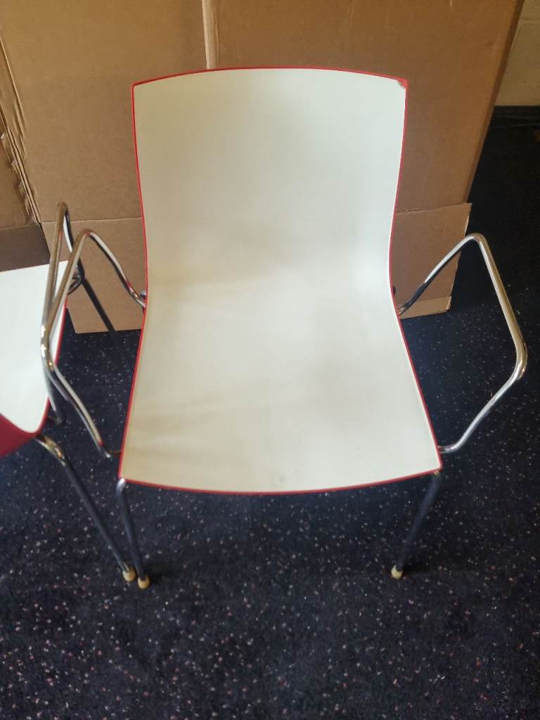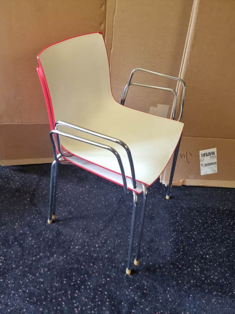These are really good quality Easywipe Canteen / Cafe Stacking Chairs with Arms Price is for both Chairs