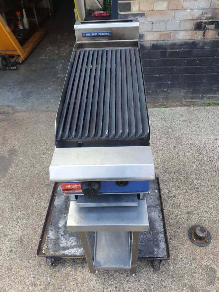 The Blue Seal Chargrill with Table 30 wide single burner is a versatile and efficient grill perfect for any commercial kitchen. With a single burner, this kebab steak peri peri grill offers precise cooking control for delicious meals. The included table makes it easy to transport and use in various settings, whether in a restaurant or mobile food service. Its compact design makes it ideal for small spaces while still delivering high-quality grill results. Upgrade your cooking equipment with this reliable and durable commercial grill from Blue Seal.