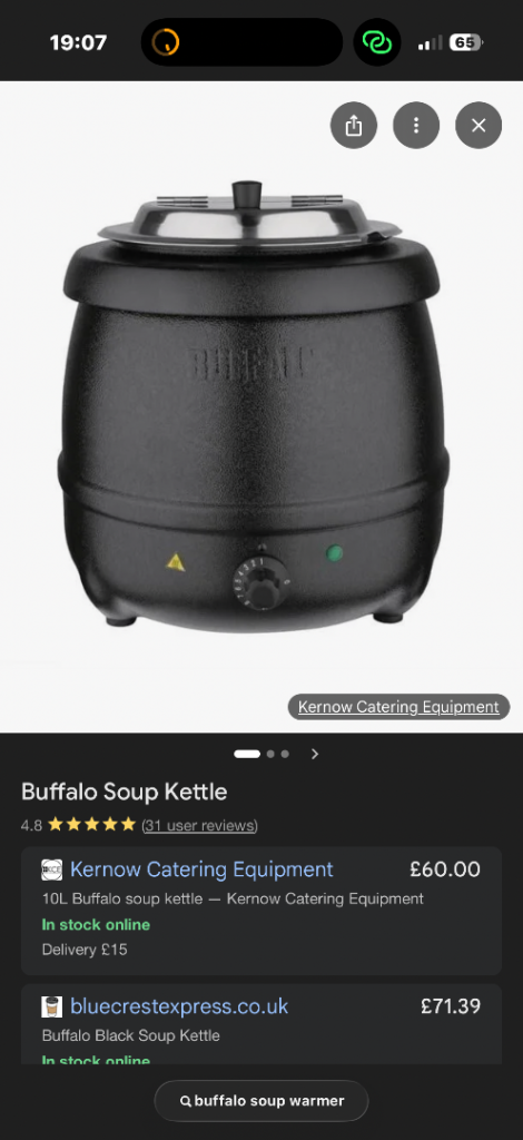 Buffalo soup warmer