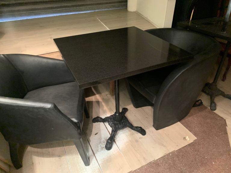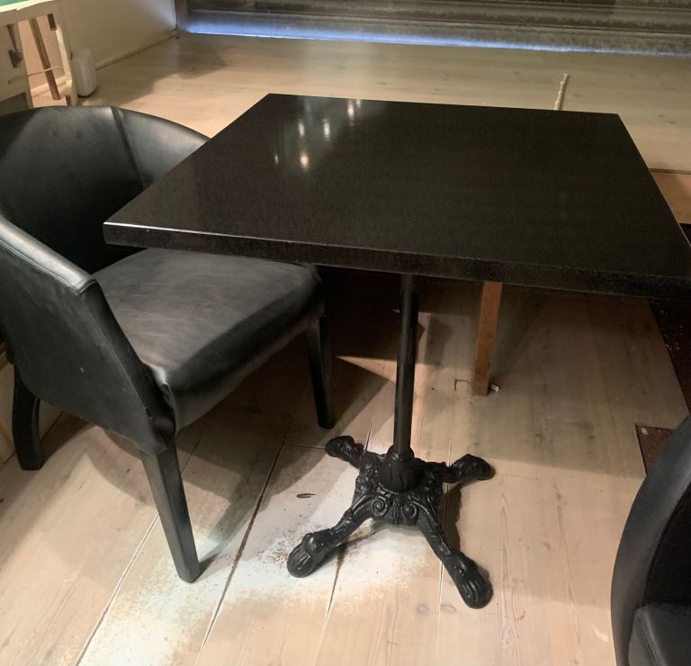 Cafe/bar/pub tables - heavy duty cast iron bases with solid natural black granite table tops