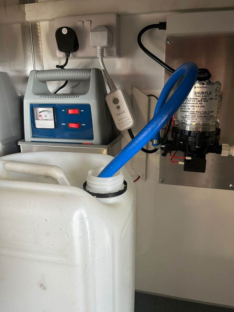 Water pump system . All enclosed in stainless steel cupboard.