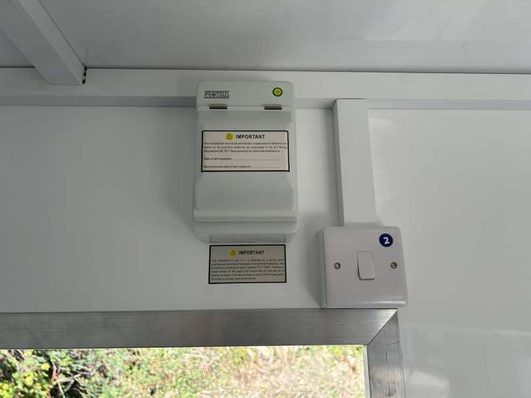1x led strip light , consumer unit with rcd protection, earth protection, trunking and 1x light switch .