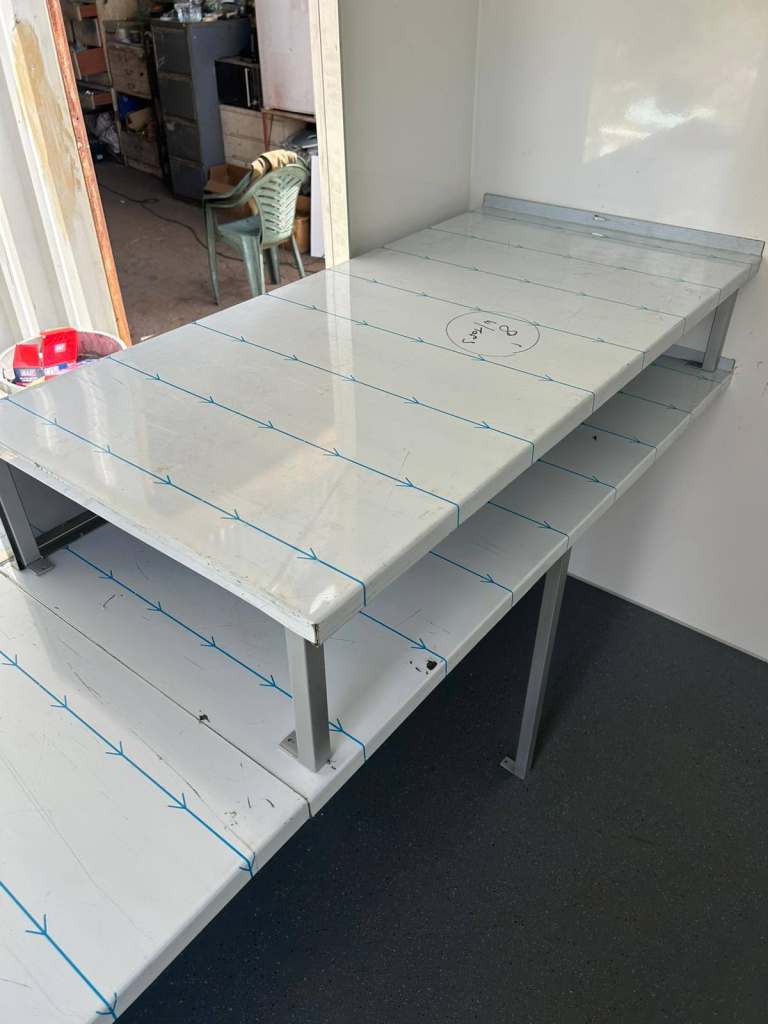 Front counter , stainless steel , low level to allow for cooking equipment.