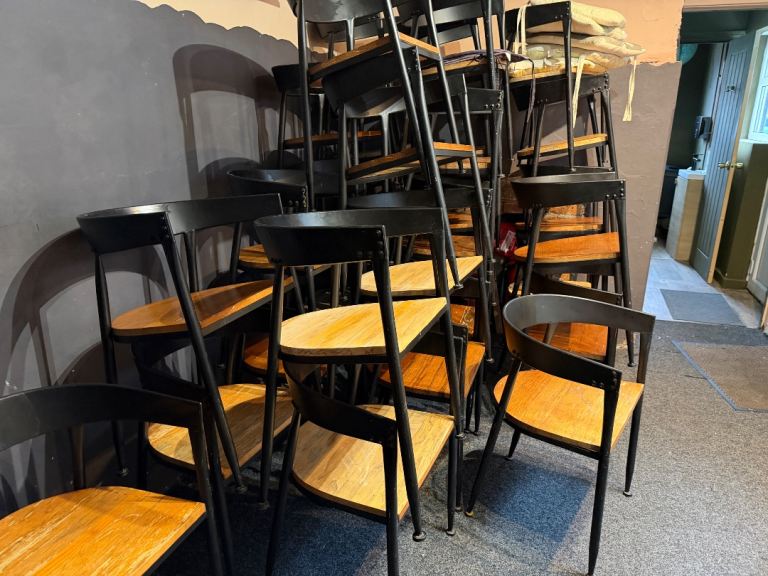 32 chairs £35 each - chairs have branding painted can be painted over in Matt black