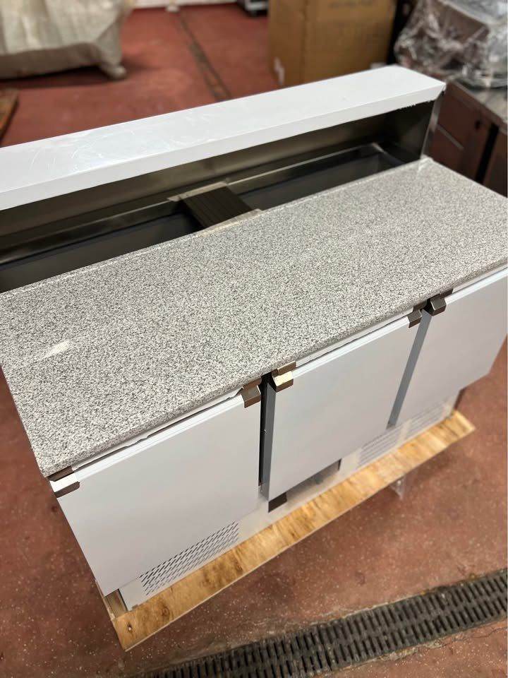 Commercial 3 Door Pizza Topping Fridge | Catering Prep Counter