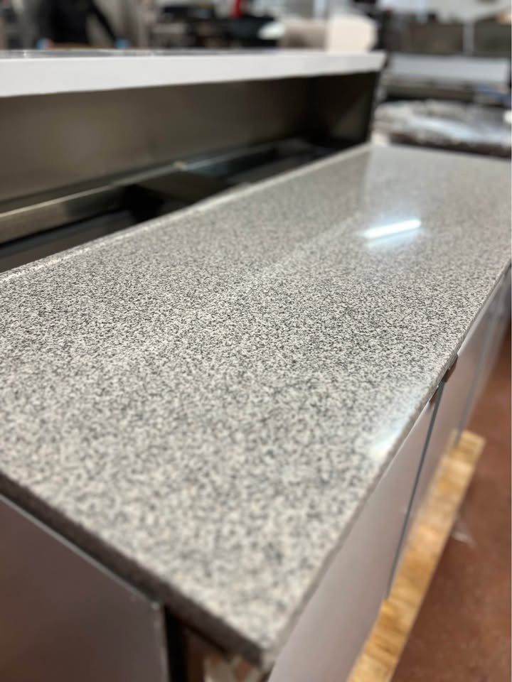 Stainless steel prep counter with chilled topping section, reliable cooling and large storage capacity.