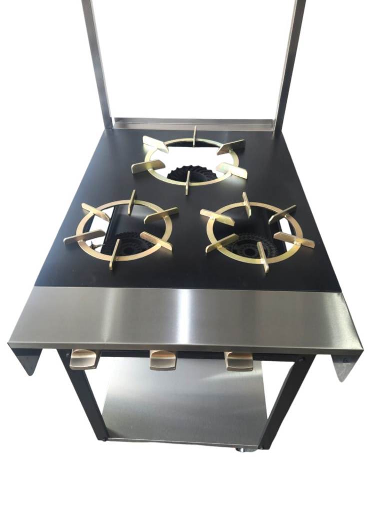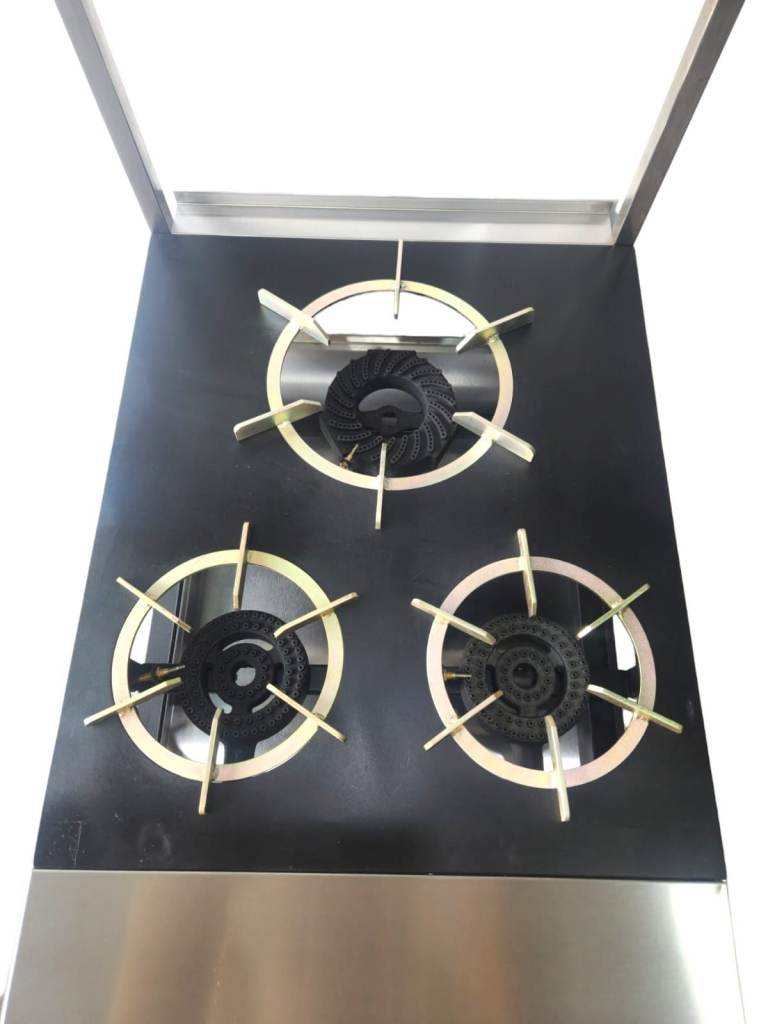 Professional quality cooking on large pot or frying up a delicious curry in a pan, the Kamil Catering Indian gas range Cooker Renowned for its high performance and ultra-reliable operation. The Indian range cooker is equipped with a medium-sized cast iron burner on the front for pot cooking and a large cast iron burner on the back for cooking large batches at the same time. With its removable steel ring, burner, tray and pan stand, the free Stand Indian range cooker is a great choice for functionality and clean ability.