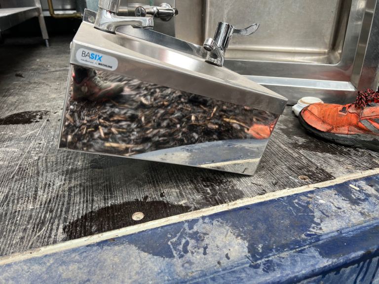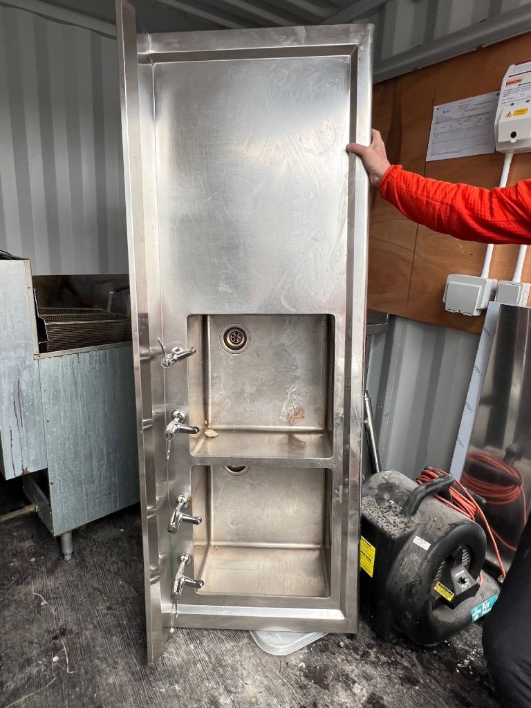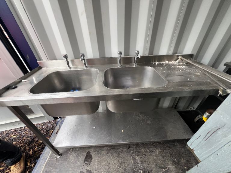 Dishwasher, double sinks, water boiler, double fryers, 6 burner oven