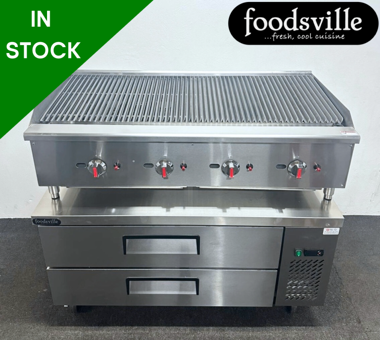 Commercial stainless steel preparation table by Moffat.