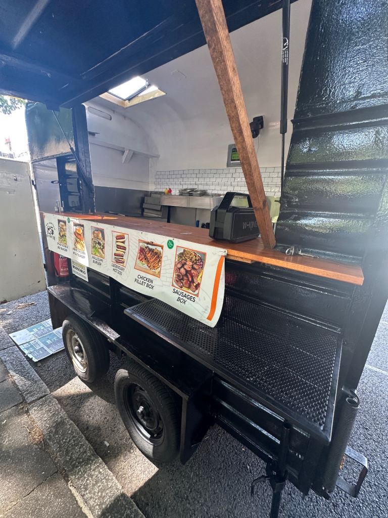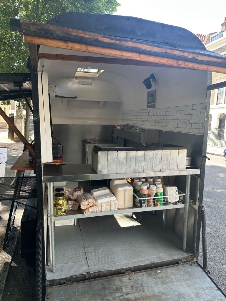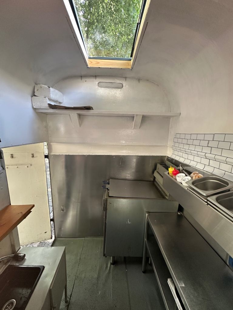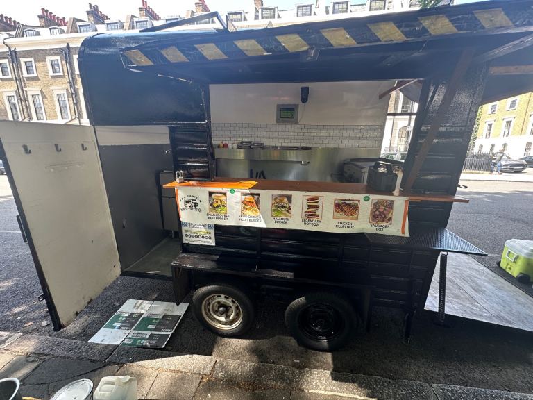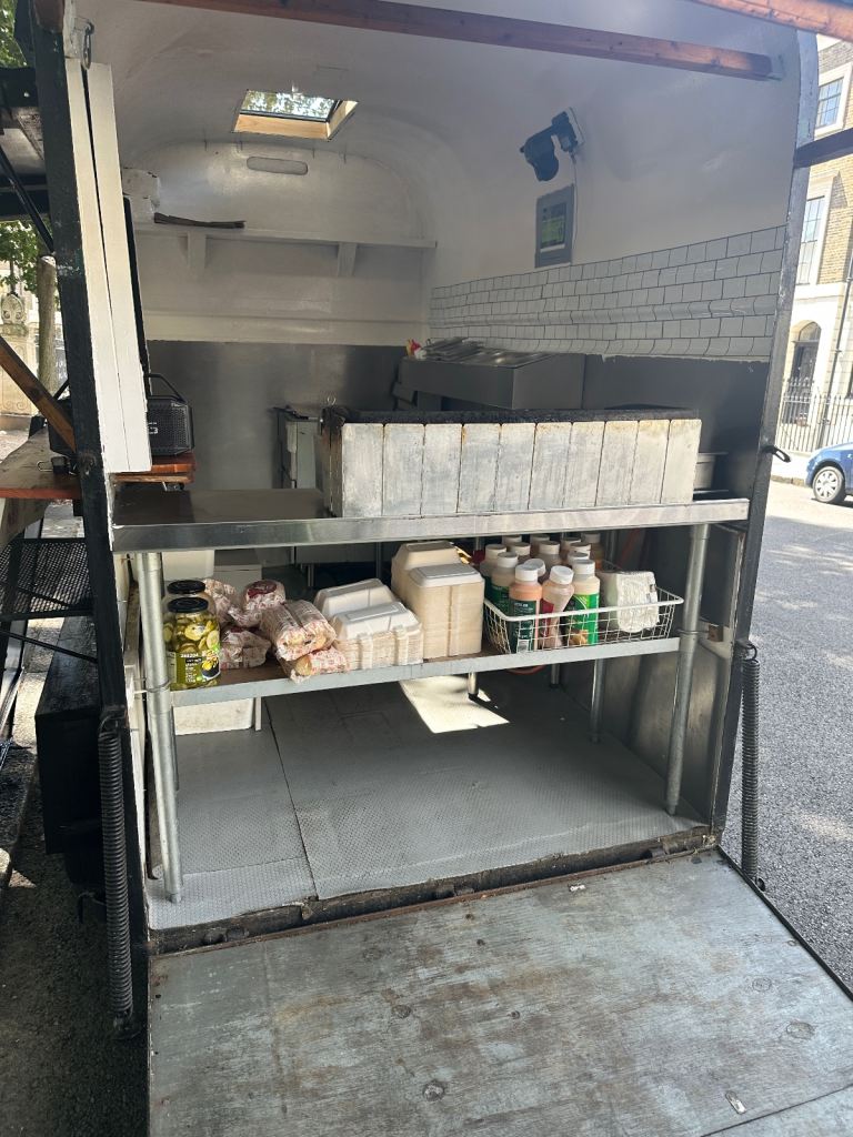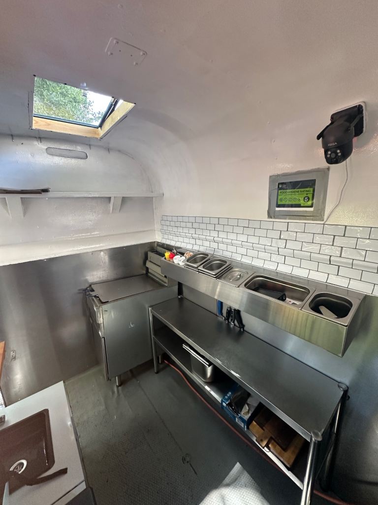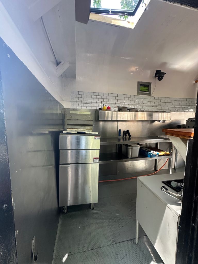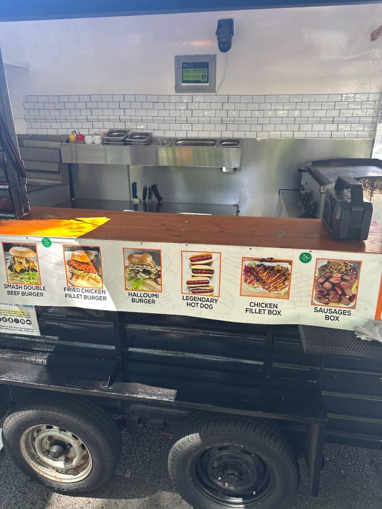 Excellent condition, ready to work, lpg gas installed with gas safety certification. Deep fryer 28litres 70cm griddle, worktops stainless steel and stainless steel covered walls, sink fire extinguisher, fire blanket . Has 5stars rating for food hygiene and safety by local authority. Ideal for burgers, fried chicken, sandwiches and more . I can deliver to your place for free of charge.
