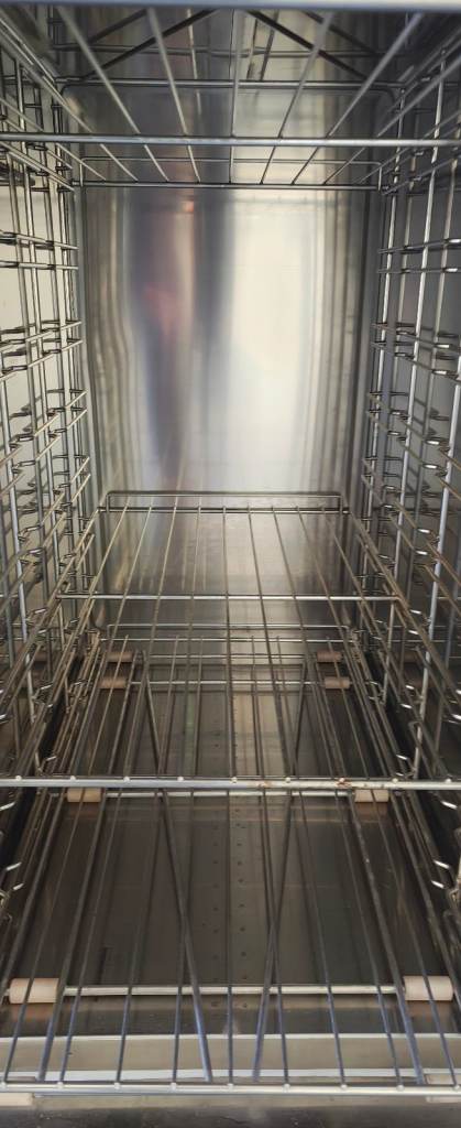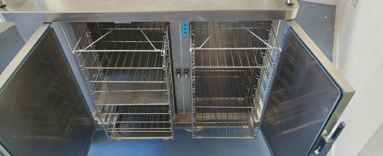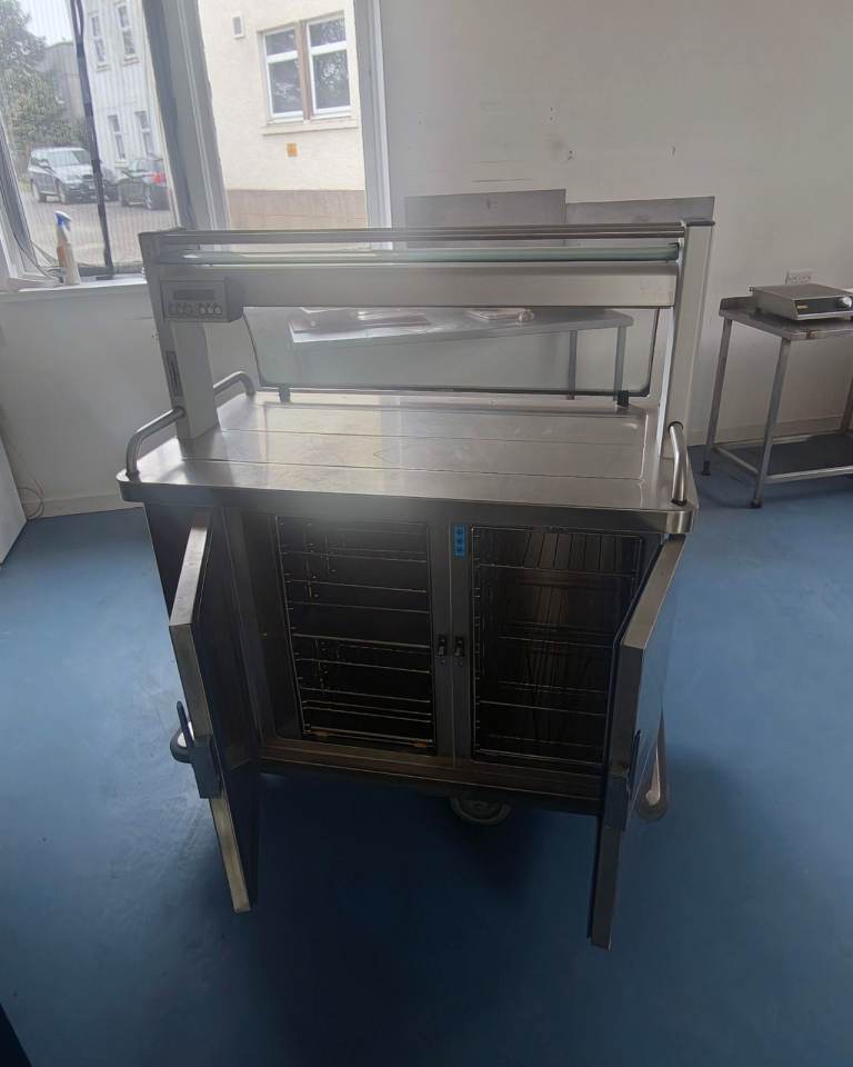 Posting for 8+ yearsFood trolley with oven & fridge sections, on wheels, and works off a 13A plug