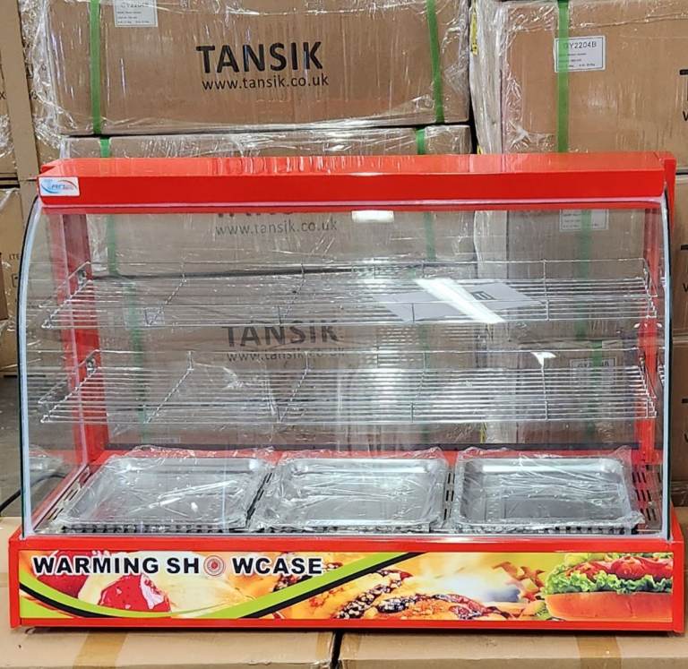 Brand New Commercial Electric Heavy-duty Single Phase Electric red colour with tube light inside hot food display cabinet countertop keep the food warm comes with small water pot to keep moisture this is a brand new item 90cm wide.with normal 13amp plug