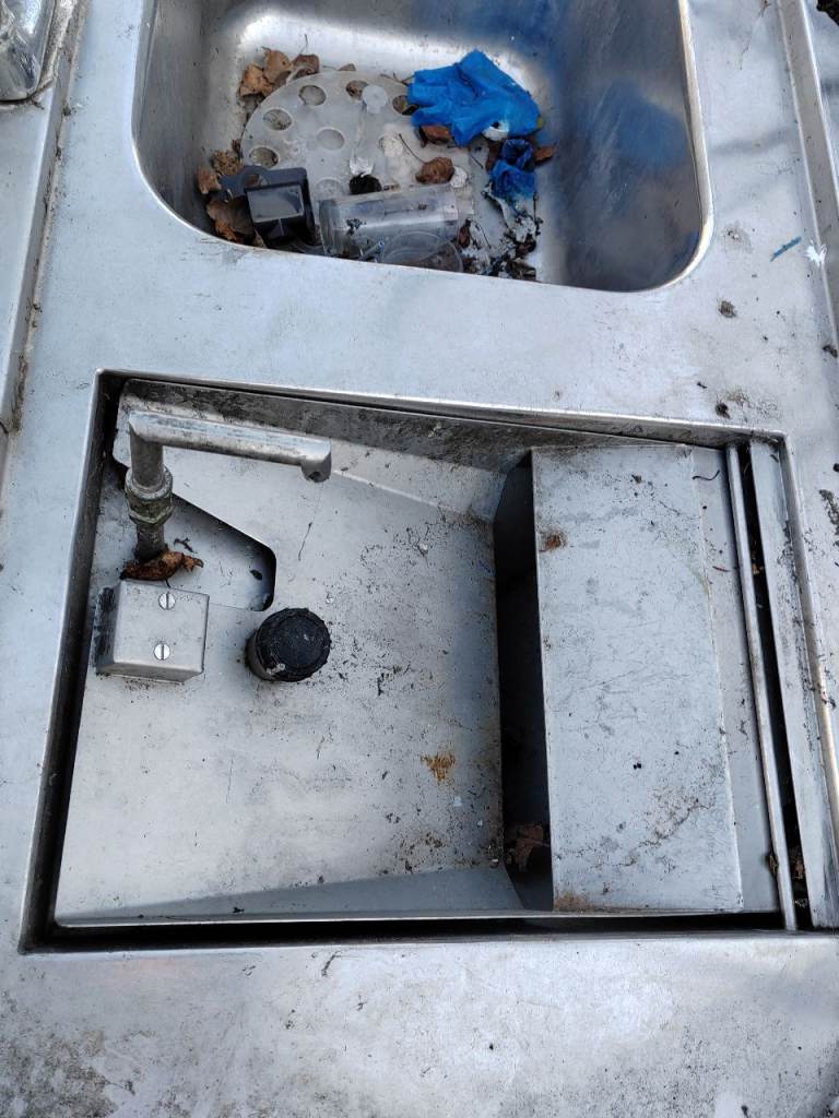 Posting for 7+ yearsLarge restaurant kitchen table with waste shredder