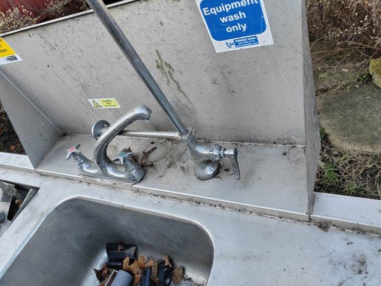 Stainless Steel restaurant kitchen table with taps and waste shredder
