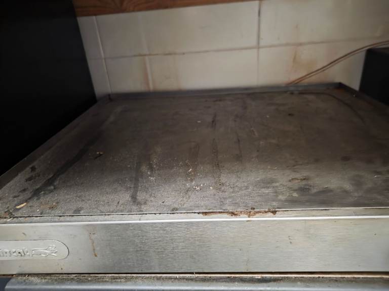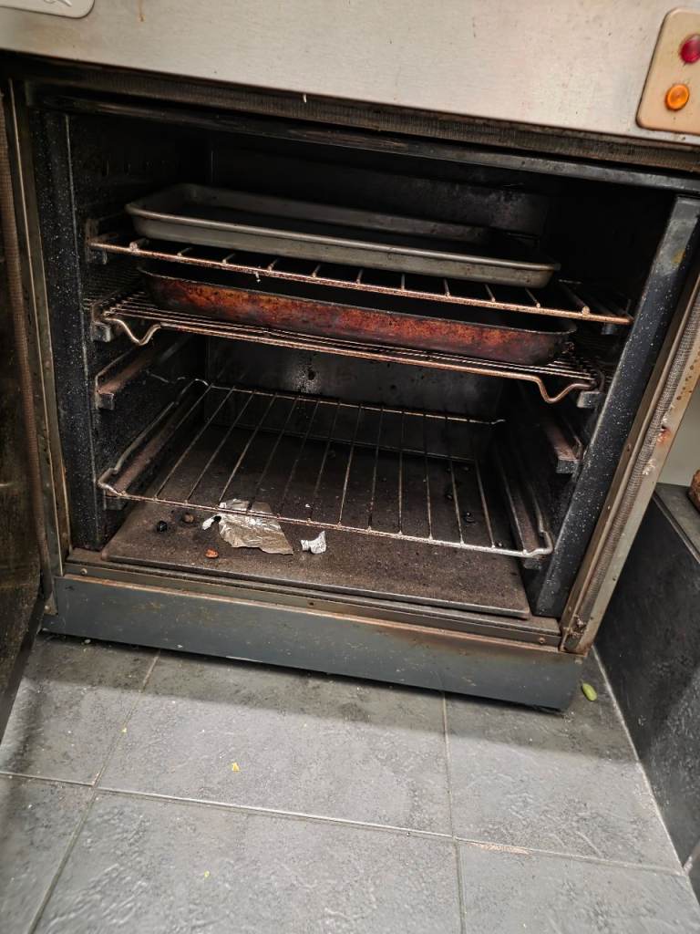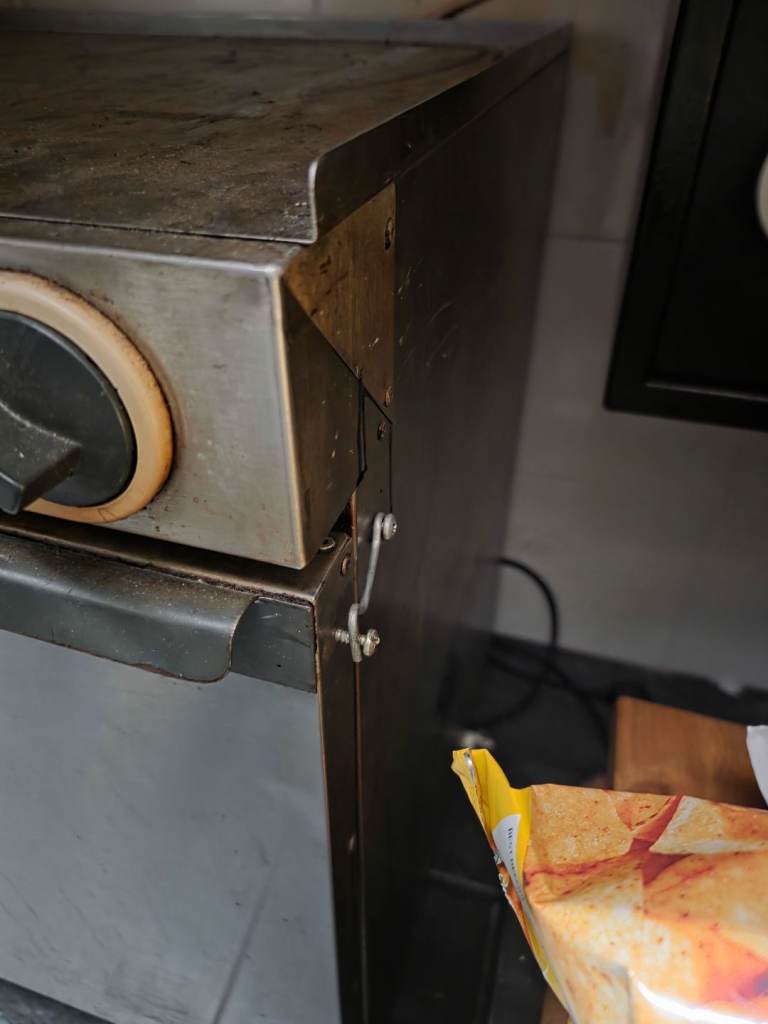 As pictured is in need of a clean and has been modified to allow the door to stay closed for cooking.