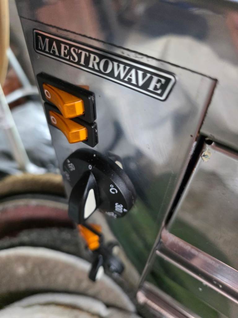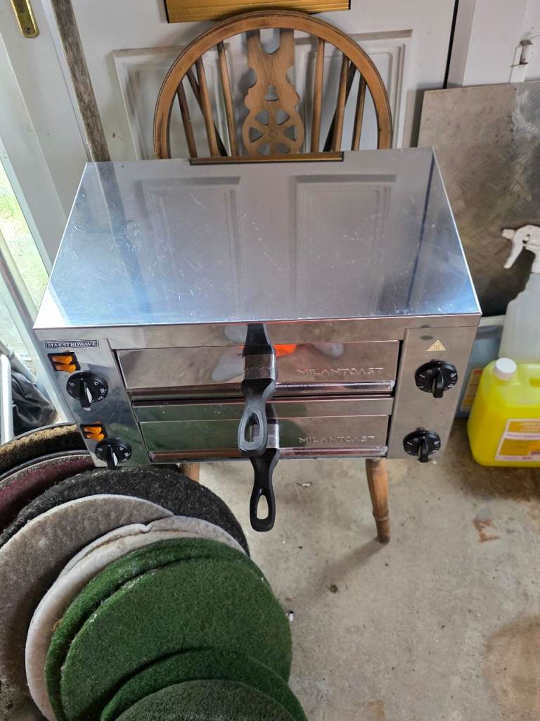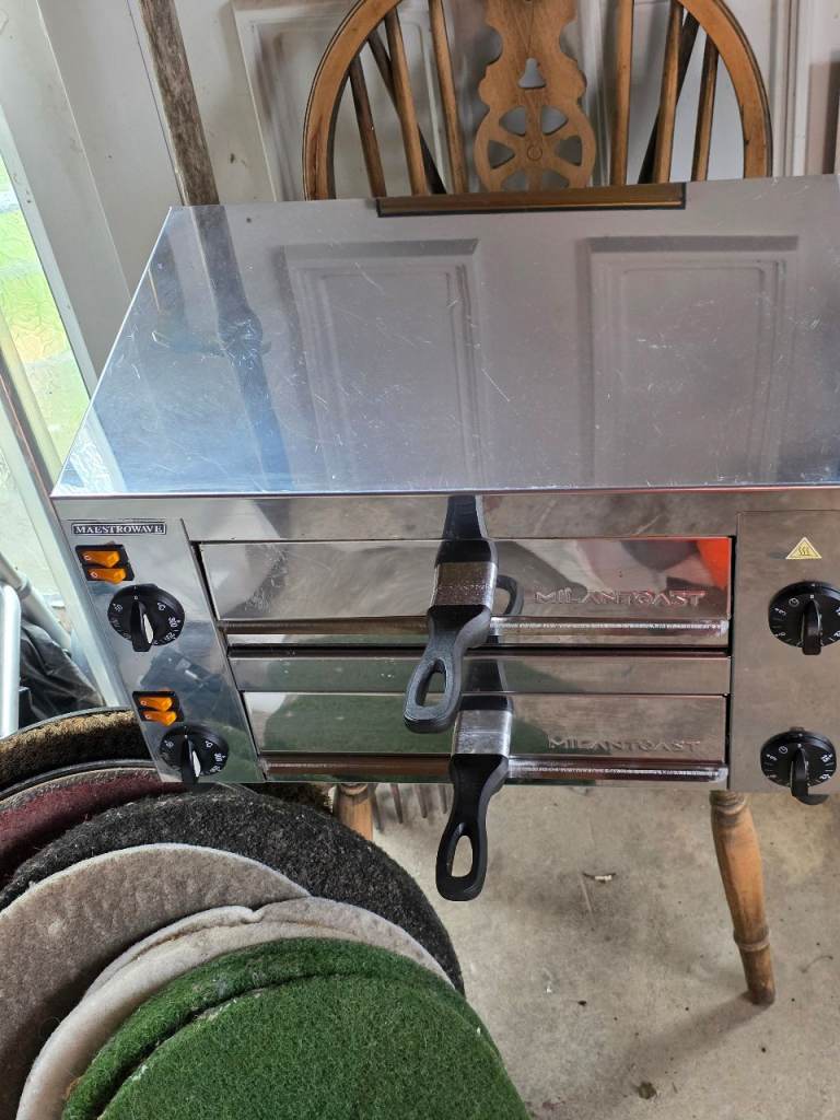 Double pizza oven it cooks quick brilliant and high temperature also keeping warm great for takeaway pub style party's as quick and convenient hardly used