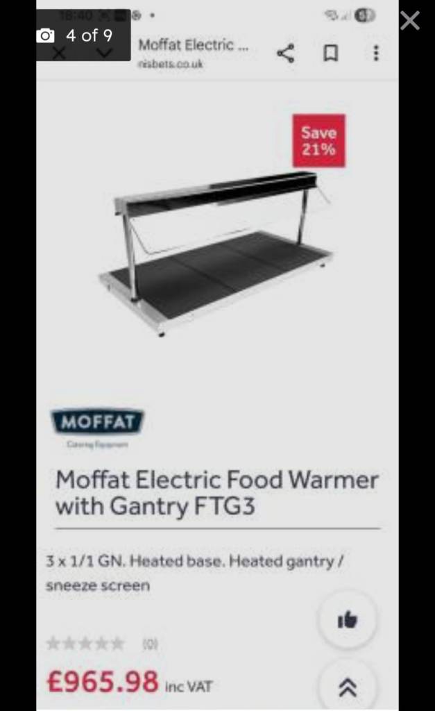 Posting for 11+ yearsMoffat FTG3 food warmer with gantry